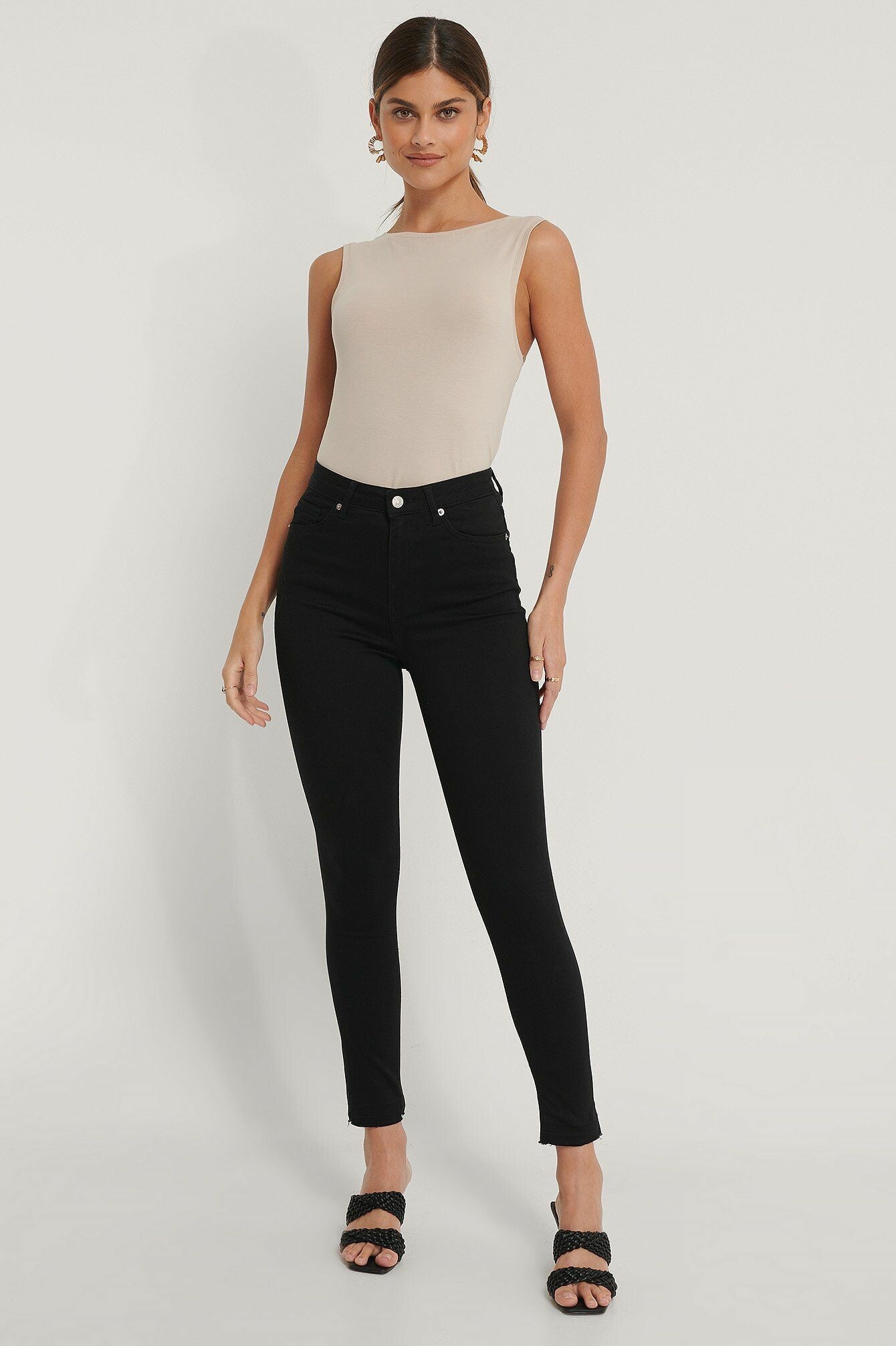 These jeans feature a high waist with a zip and button closure, a five-pocket design, raw hems and a skinny fit with a stretchy feel. NA-KD Reborn is our most sustainable collection. This product is made from sustainable materials and is simply better for the planet. BASIC STOCK