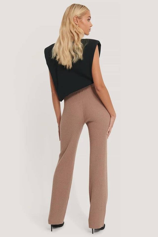 These pants feature a ribbed design, an elastic waistband, a wide straight leg and a comfy stretchy material. These pants come in camel