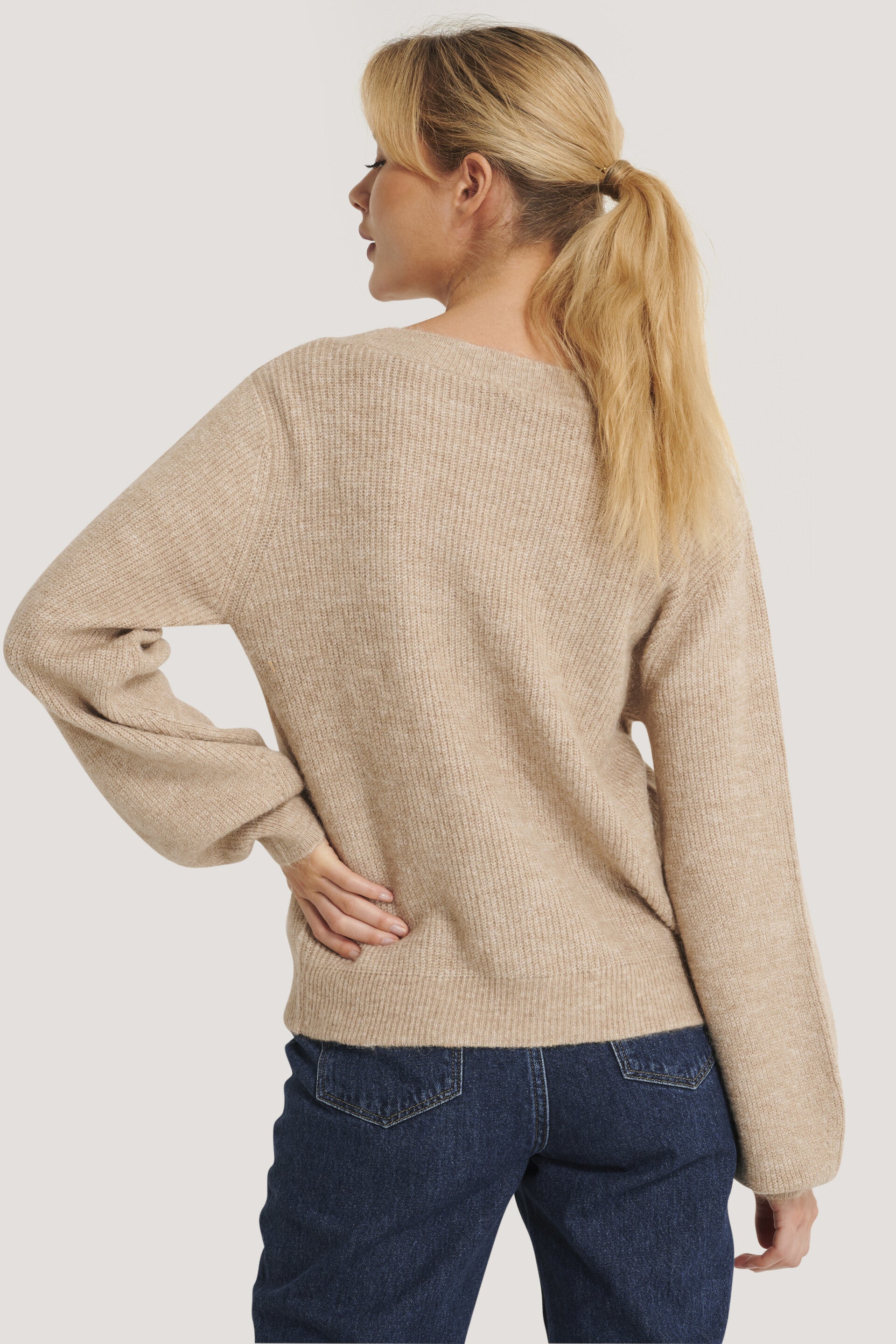 Na-kd trui in de kleur zwart. Trui 1100-002863 is voorzien van ballon mouwen, een mooie v-hals en een gebreide look. De trui is gemaakt van 54% Acryl / 26% Polyester / 10% Polyamide, eindeloos te combineren & voelt mega comfortabel aan.