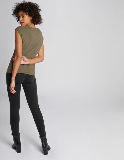 T-shirt met korte mouwen en marineblauwe gestreepte halslijn