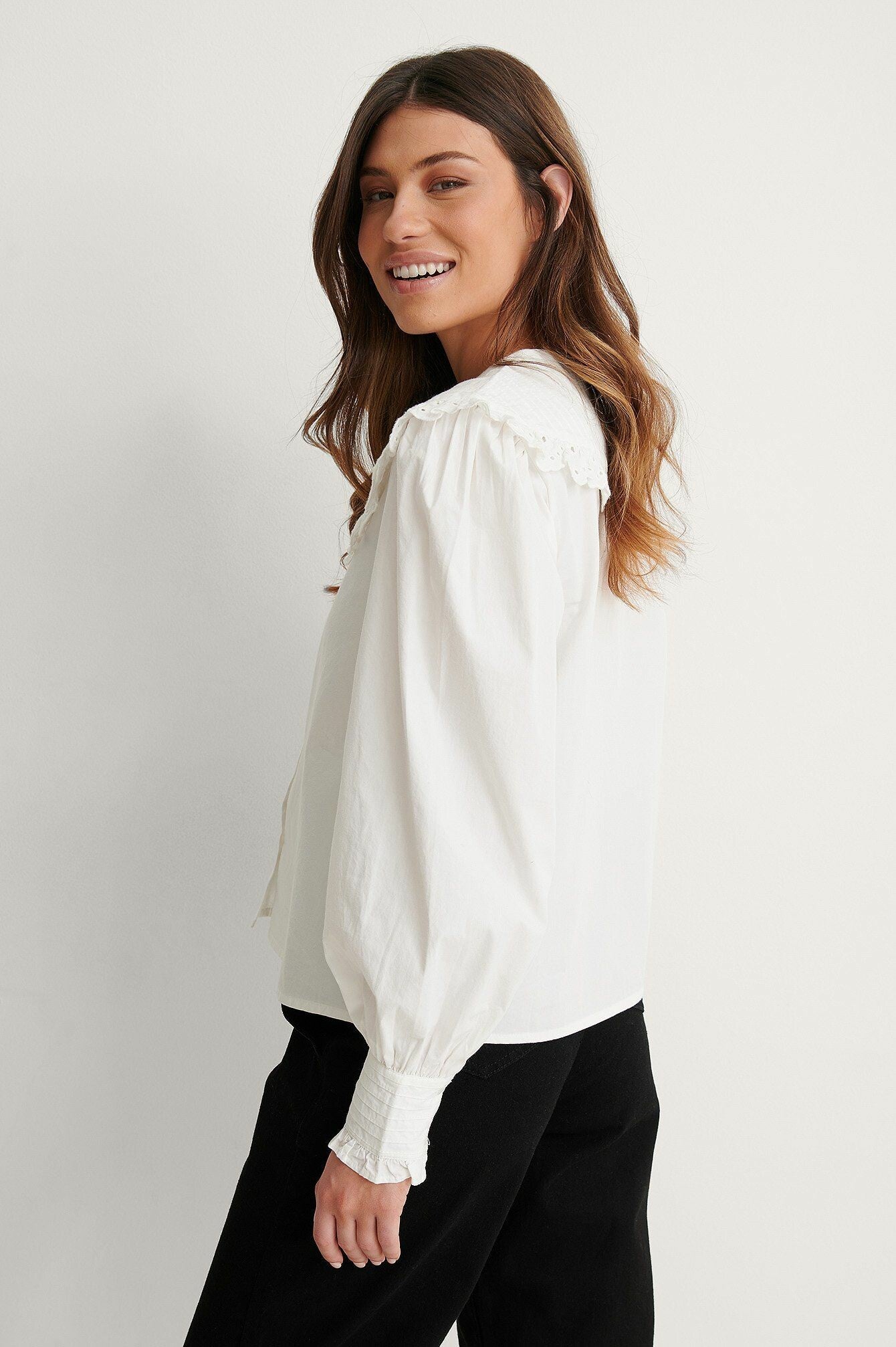 NA-KD Wide Collar Cotton Anglaise Blouse