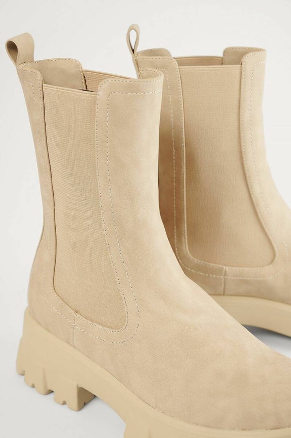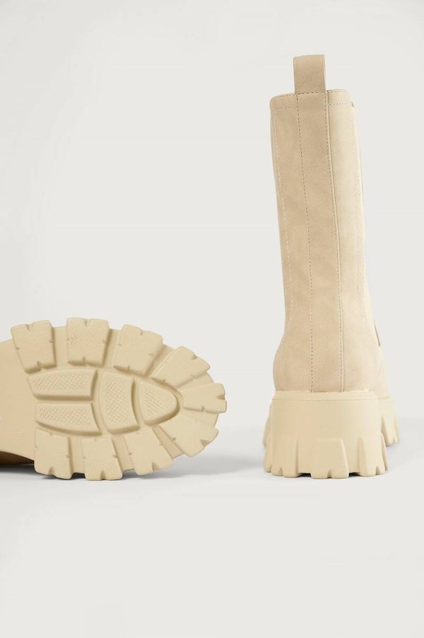 These boots are made of PU and feature a high ankle, a round toe and a thick rubber sole. Sole Height: 3,5 cm / 1.38 in. These boots come in Off White.
