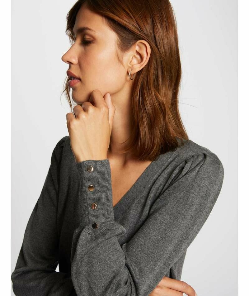 - TRUI MET LANGE MOUWEN EN V-HALS, RECHTE PASVORM, V-HALS, LANGE MOUWEN, FIJNE TRICOT, POFMOUWEN, DECORATIEVE KNOOPJES BIJ DE MANCHETTEN, HET MODEL IS 1,75 M EN DRAAGT MAAT S/36, MAATADVIES: KIES UW GEBRUIKELIJKE MAAT, REFERENTIE: 212-MOTEUR
