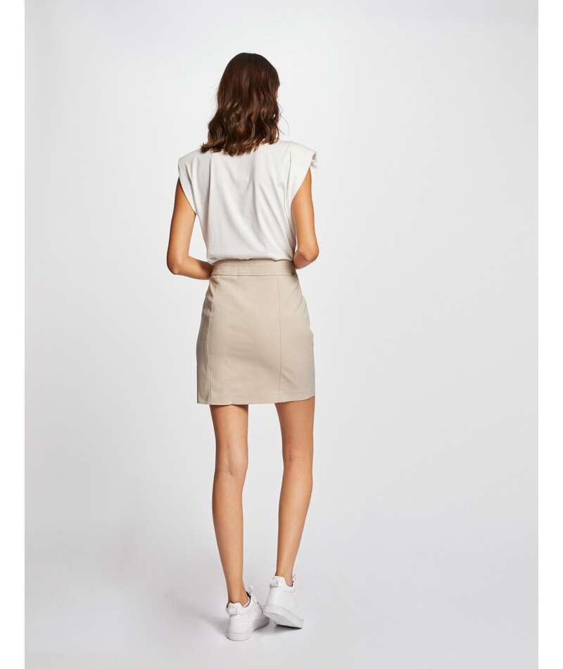 - RECHTE ROK MET KNOPEN EN HOGE TAILLE, HOGE TAILLE, RECHTE PASVORM, KORTE ROK, KNOOPSLUITING AAN DE VOORKANT, 2 SCHUINE ZAKKEN AAN DE VOORKANT, HET MODEL IS 1M75 EN DRAAGT MAAT S/36, MAATADVIES: KIES UW GEBRUIKELIJKE MAAT
