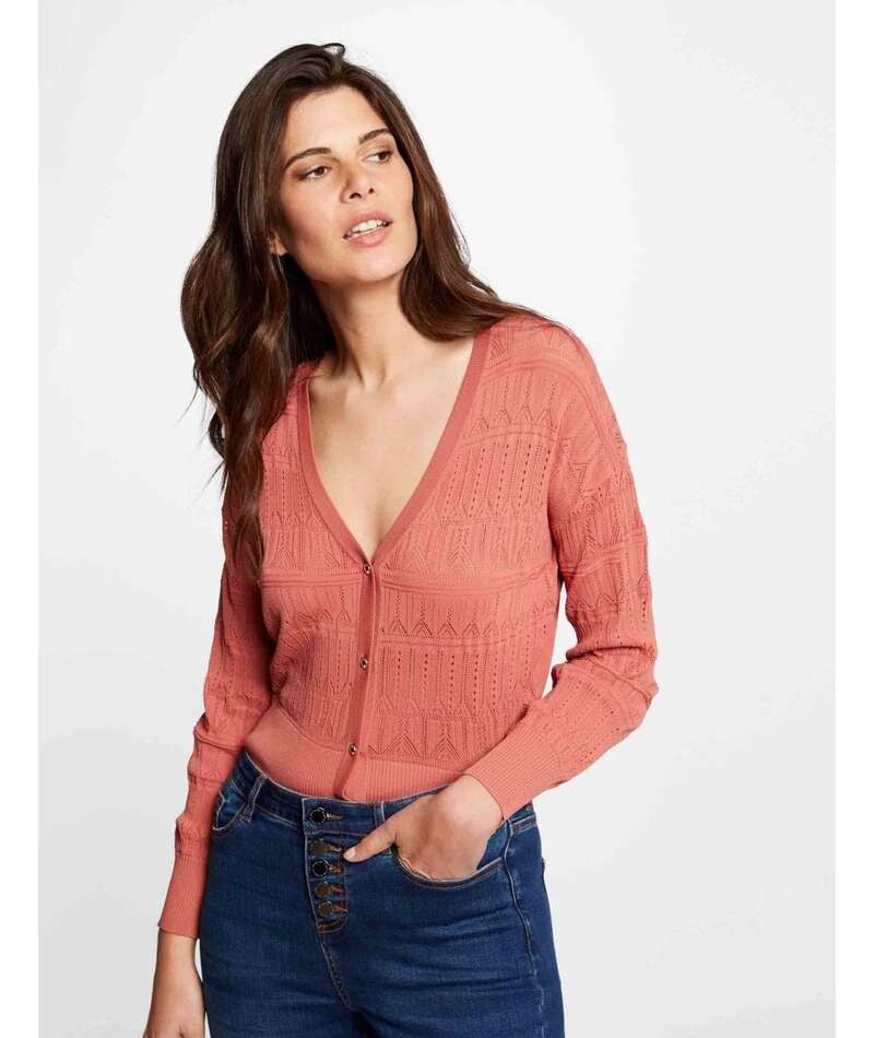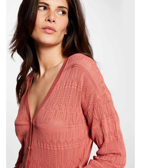 - RECHT VEST MET LANGE MOUWEN EN V-HALS, KORTE RECHTE PASVORM, V-HALS, LANGE MOUWEN, KNOOPSLUITING AAN DE VOORKANT, FIJN GEBREID, OPENGEWERKTE DETAILS, HET MODEL IS 1,75 M LANG EN DRAAGT MAAT S/36, MAATADVIES: KIES UW GEBRUIKELIJKE MAAT, REFERENTIE: 222-MUSIC