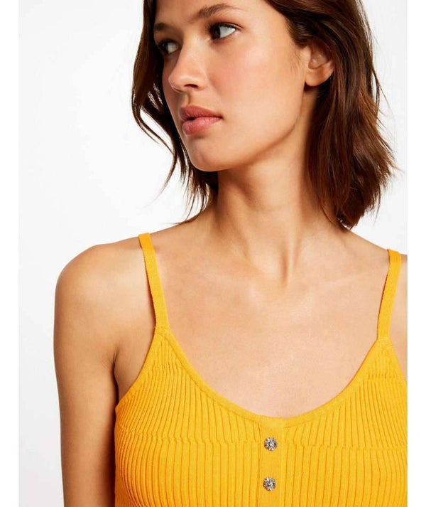 - PULLOVER TANKTOP MET DUNNE BANDJES, AANSLUITENDE PASVORM, V-HALS, SMALLE BANDJES, FIJN GEBREID, RIBBREIWERK, SIERKNOPEN BIJ DE BUSTE, VERSTELBARE BANDJES, HET MODEL IS 1,75 M LANG EN DRAAGT MAAT S/36, MAATADVIES: KIES UW GEBRUIKELIJKE MAAT, REFERENTIE: 222-MOAM